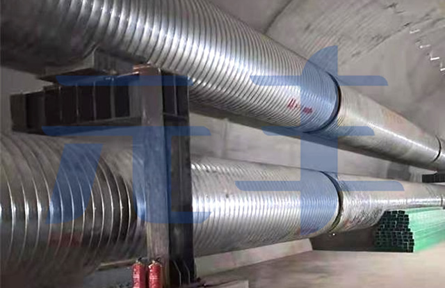 制作外护管用的铁皮采用镀锌防腐层,可长期在露天环境中而不腐蚀;由于该产品采用了镀锌铁皮代替传统的聚乙烯外护管,避免了聚乙烯长期在露天环境下老化的问题;镀锌铁皮外护管采用螺旋成形结构,该结构整体抗弯性能、结合缝处受力情况好。
